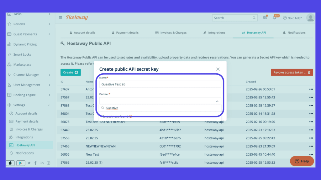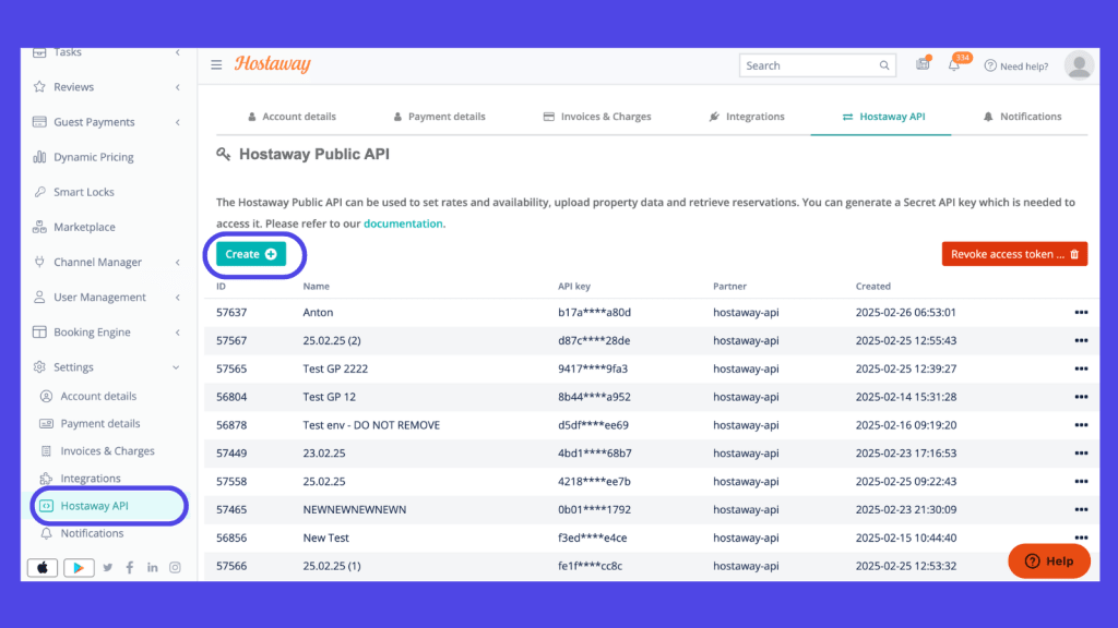 2) Login to Hostaway and navigate to Hostaway API where to can create a new API key:
