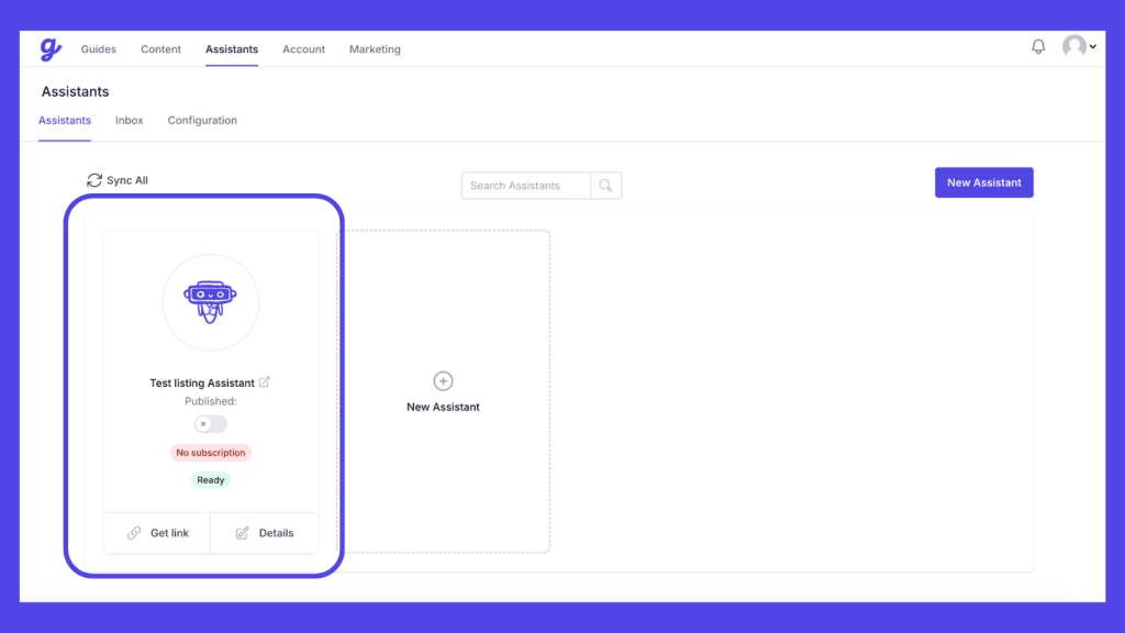 9) Once you have 'Published' your Guide & Assistant you are ready to receive messages! If you want to check messages before the A.I. responds then you can set "Draft Mode" under "Configuration" and your messages will go to inbox for reviewing before being sent. If the A.I. Assistant does not know the answer then messages will also appear here in Auto-pilot as well.